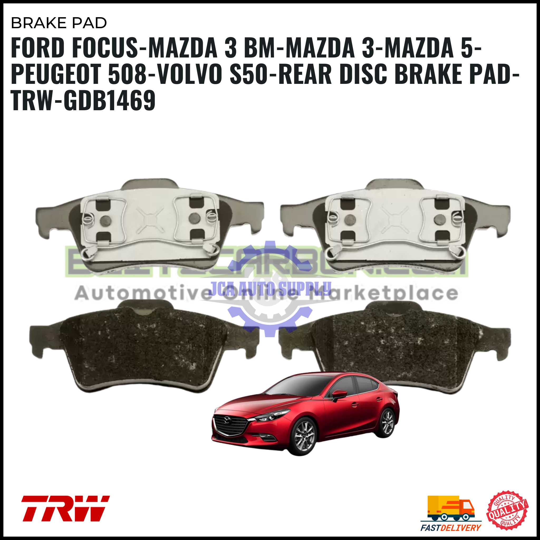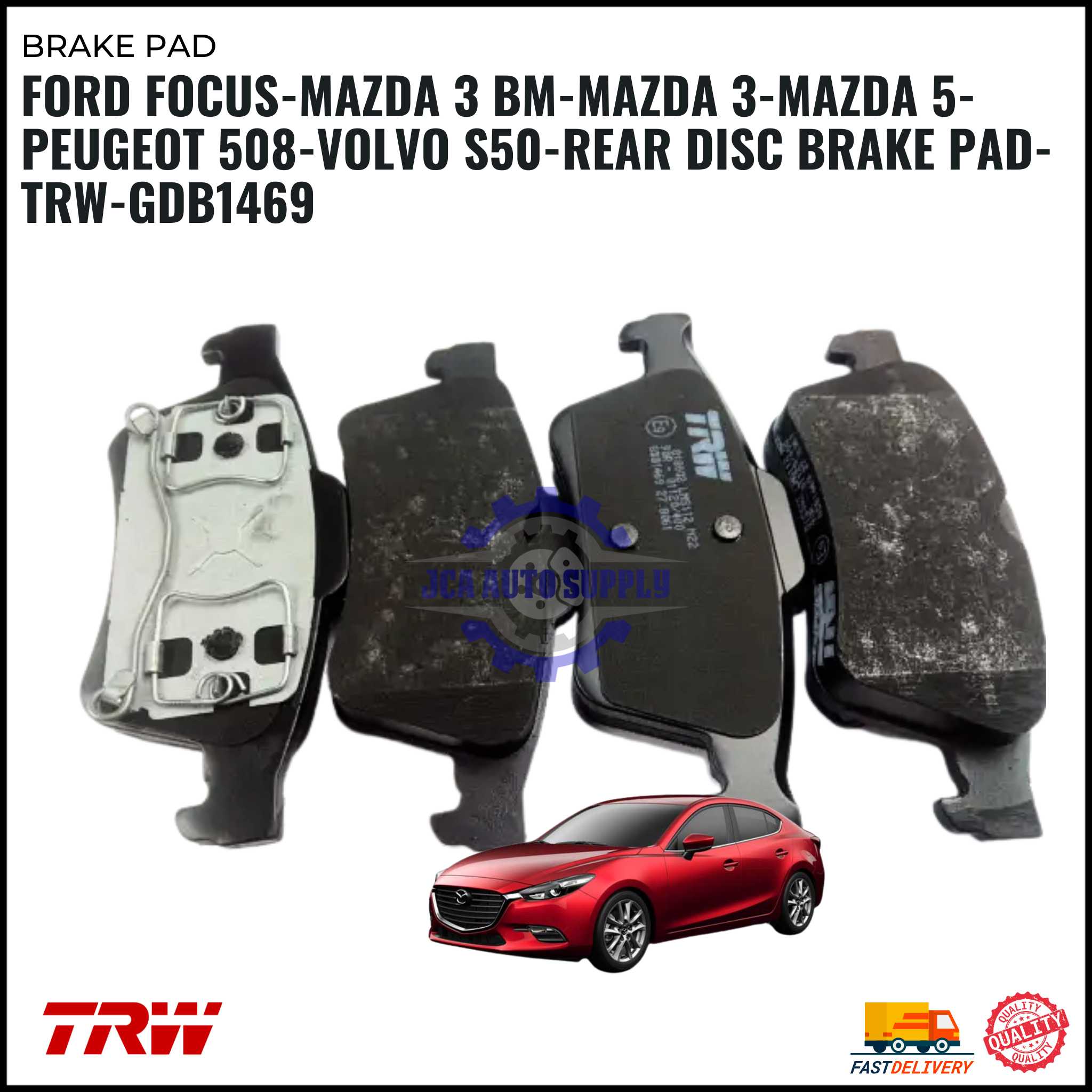 Ford Focus-Mazda 3 BM-Mazda 3-Mazda 5-Peugeot 508-Volvo S50-Rear Disc Brake Pad-TRW-GDB1469