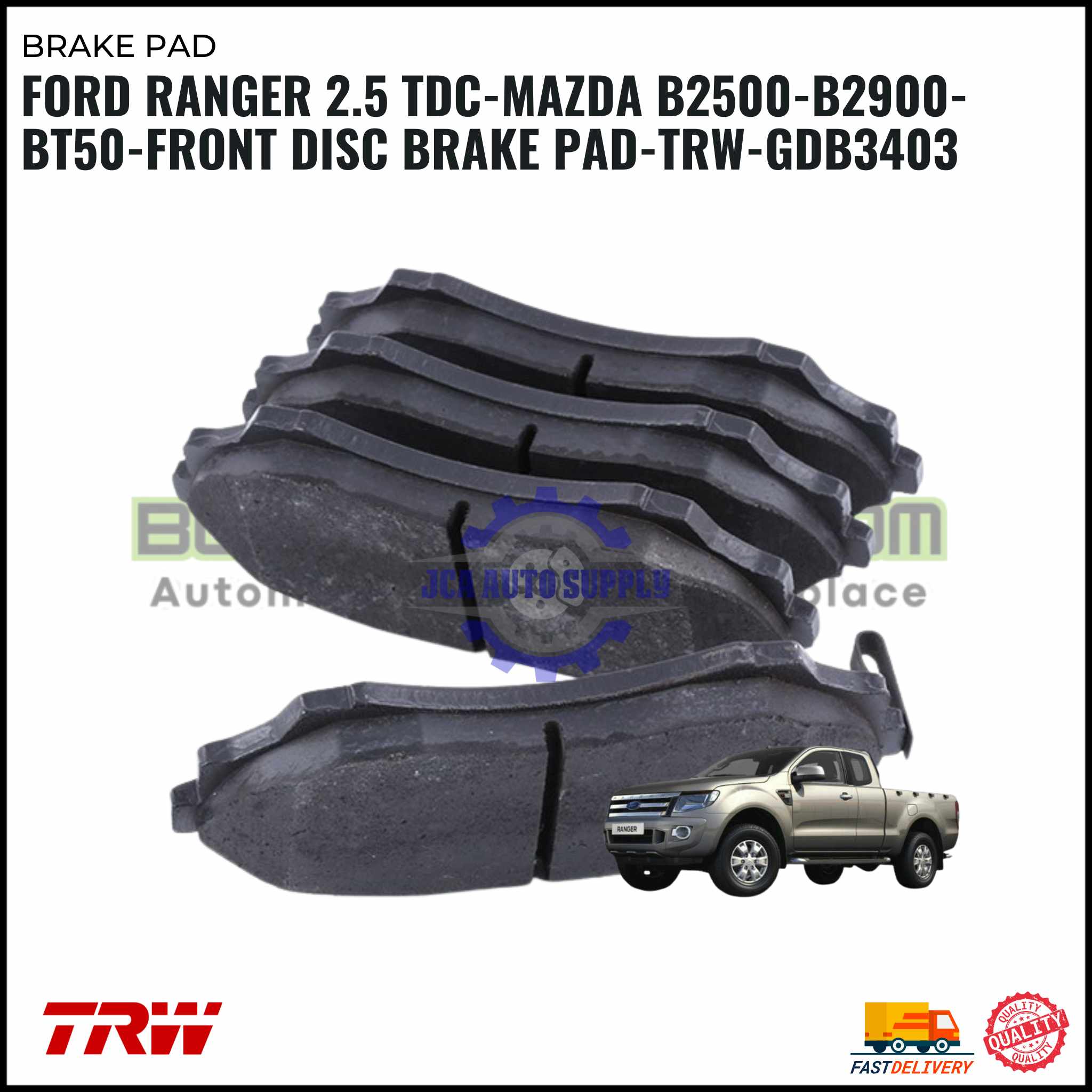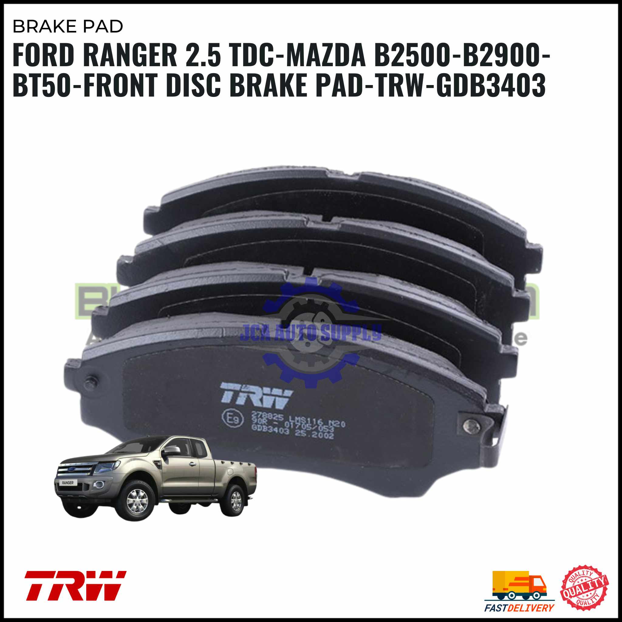 Ford Ranger 2.5 TDC-Mazda B2500-B2900-BT50-Front Disc Brake Pad-TRW-GDB3403