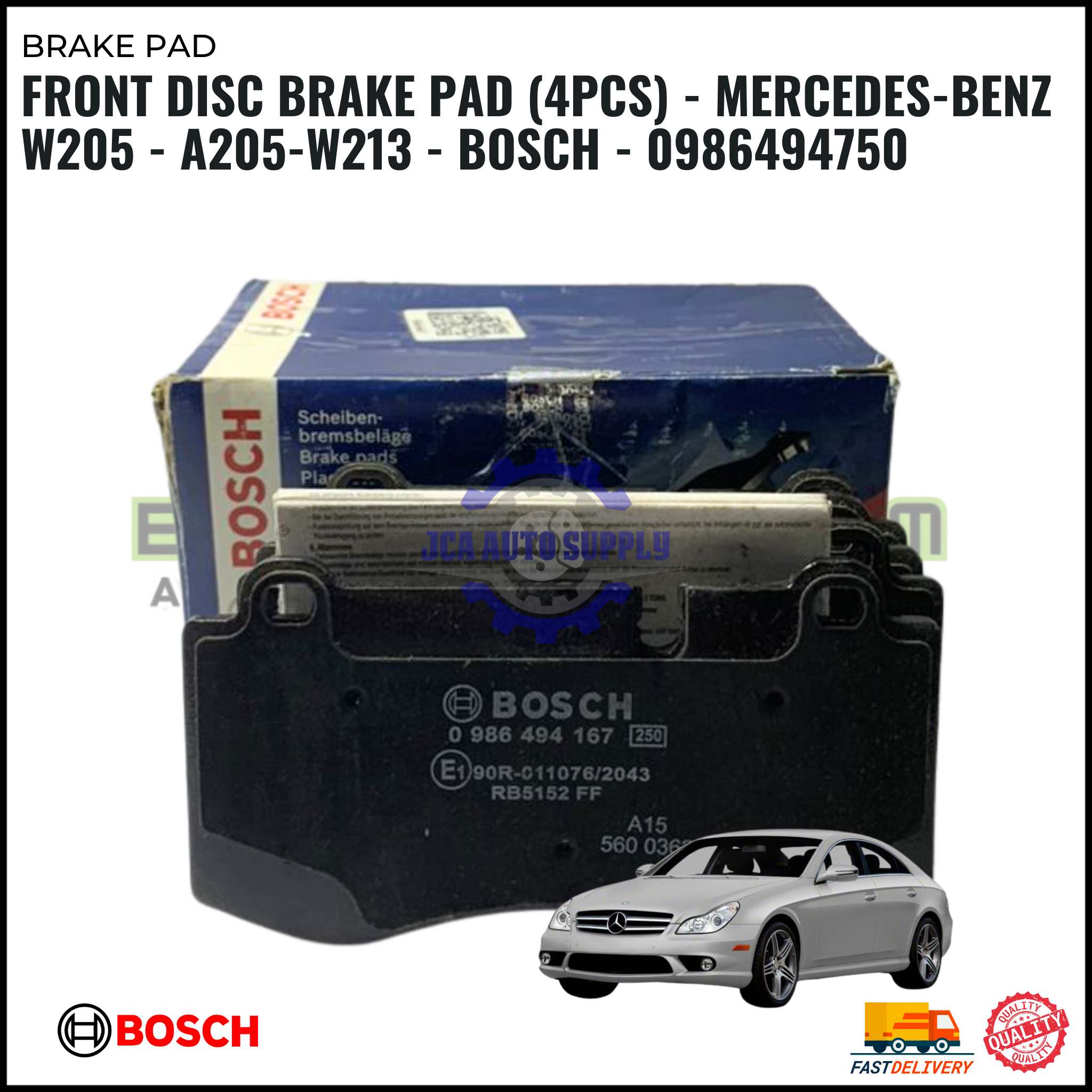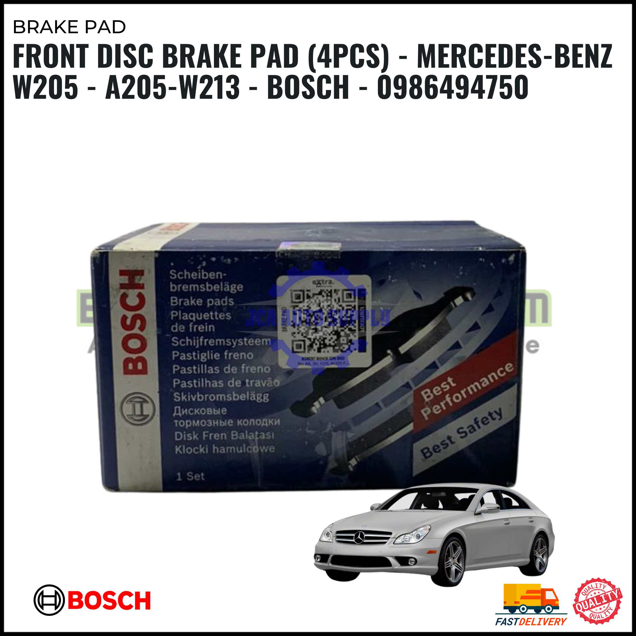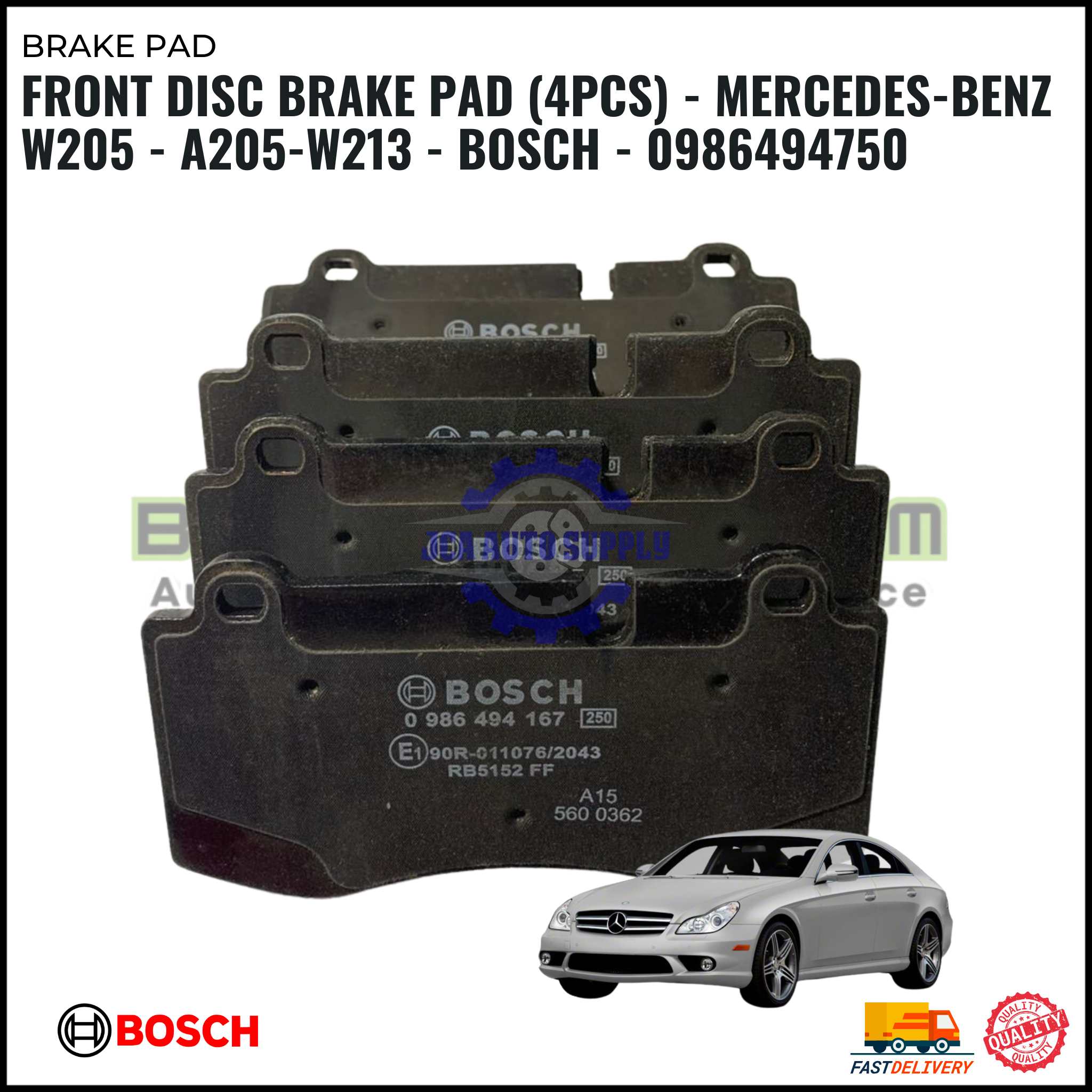 FRONT DISC BRAKE PAD (4PCS) – MERCEDES-BENZ W205 – A205-W213 – BOSCH – 0986494750