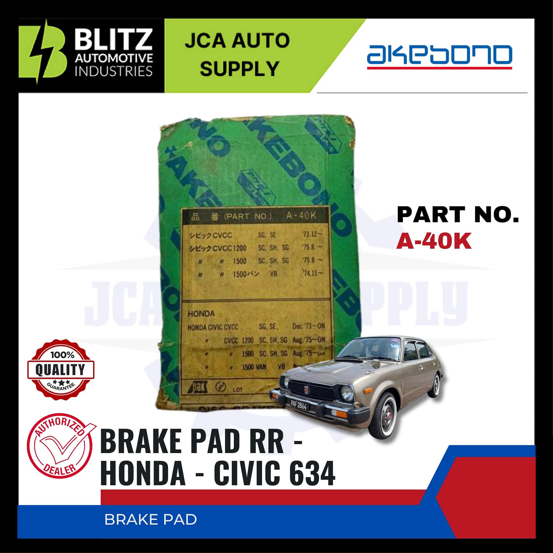 HONDA – CIVIC 634 – Front Brake Pads – AKEBONO – A-40K