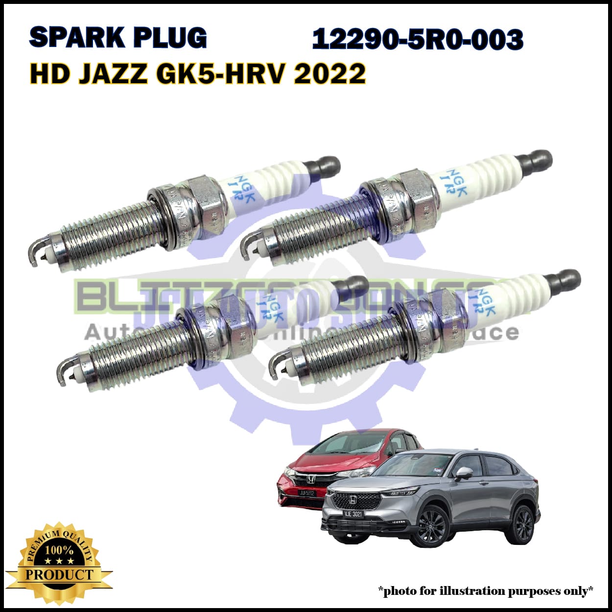Honda Double Iridium Spark Plug-Honda Jazz GK5-HRV 2022-CRZ-12290-5R0-003-DILZKAR7C11S