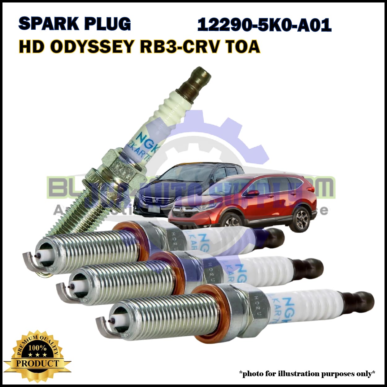 Honda Iridium Spark Plug-Honda Odyssey RB3-RC4-CRV TOA-Accord 2.4cc-12290-5K0-A01-ILZKAR7E11S