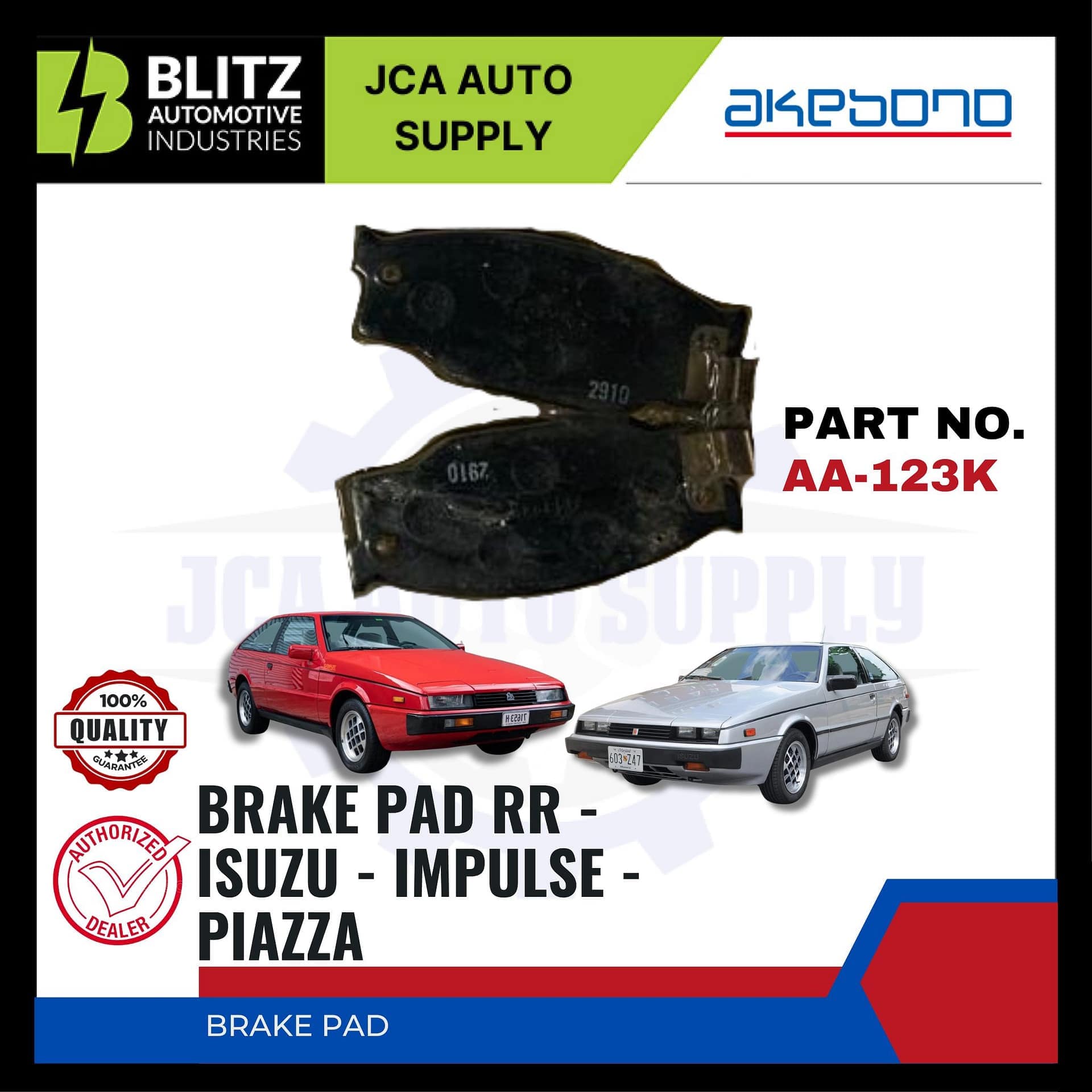 ISUZU- IMPULSE – PIAZZA – FASTER – Front Brake Pads – AKEBONO – AA-123K