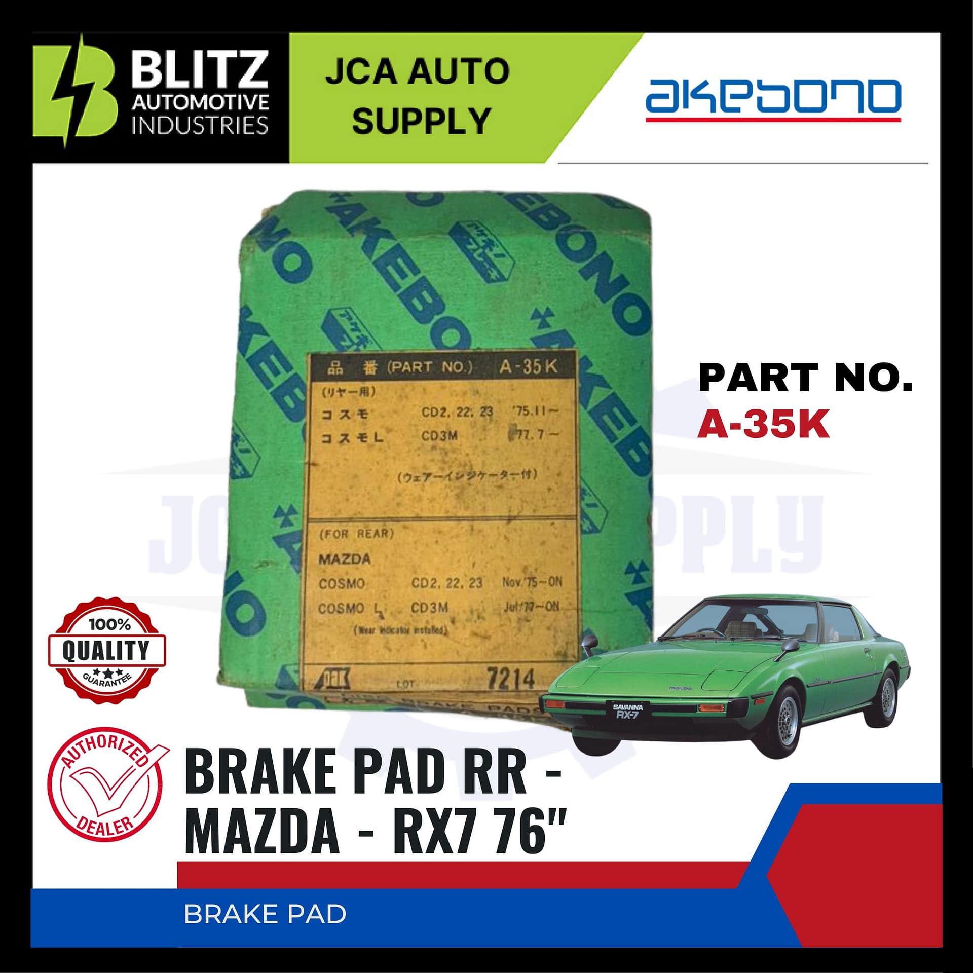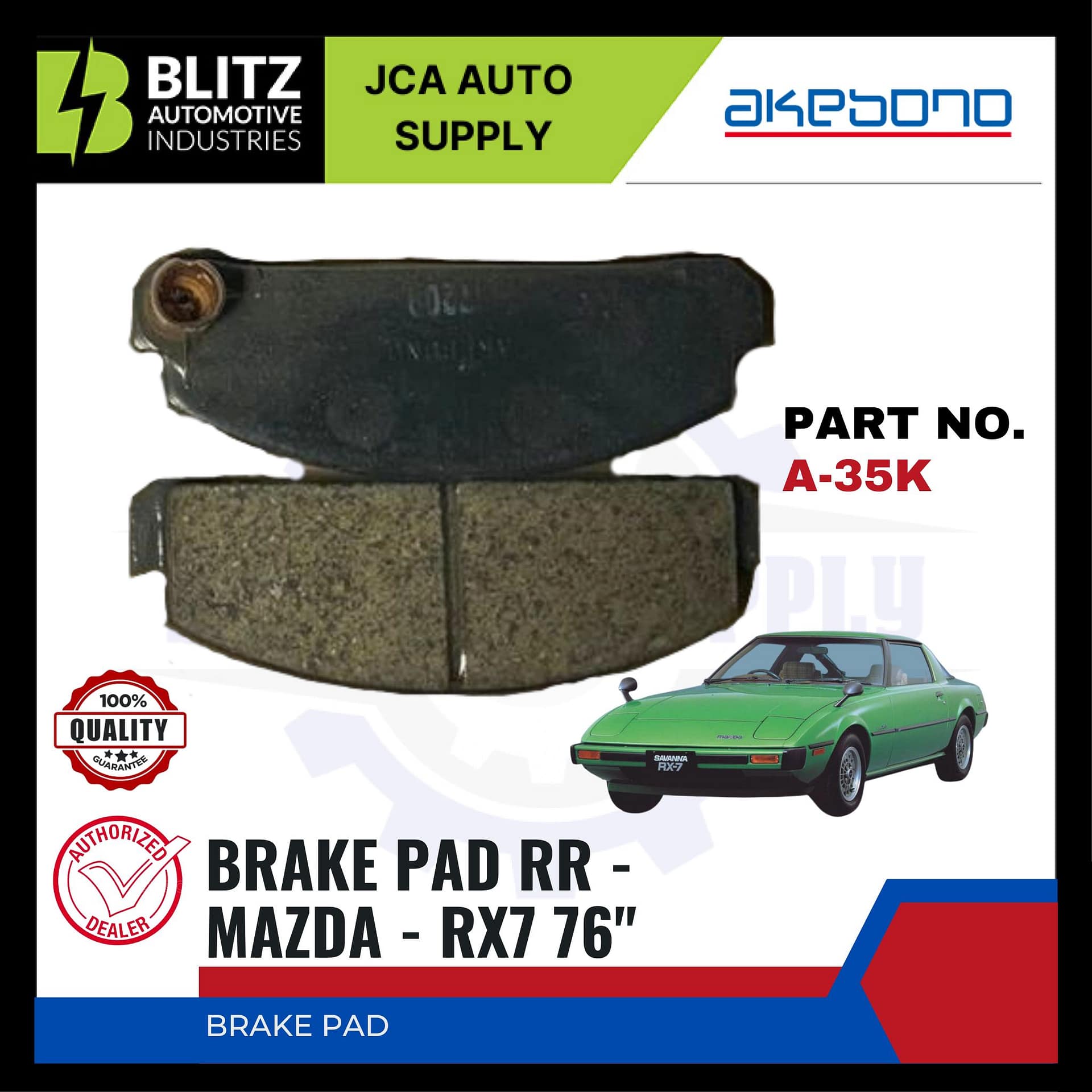 MAZDA – RX7 76″ – FRONT BRAKE PADS – AKEBONO – A-35K