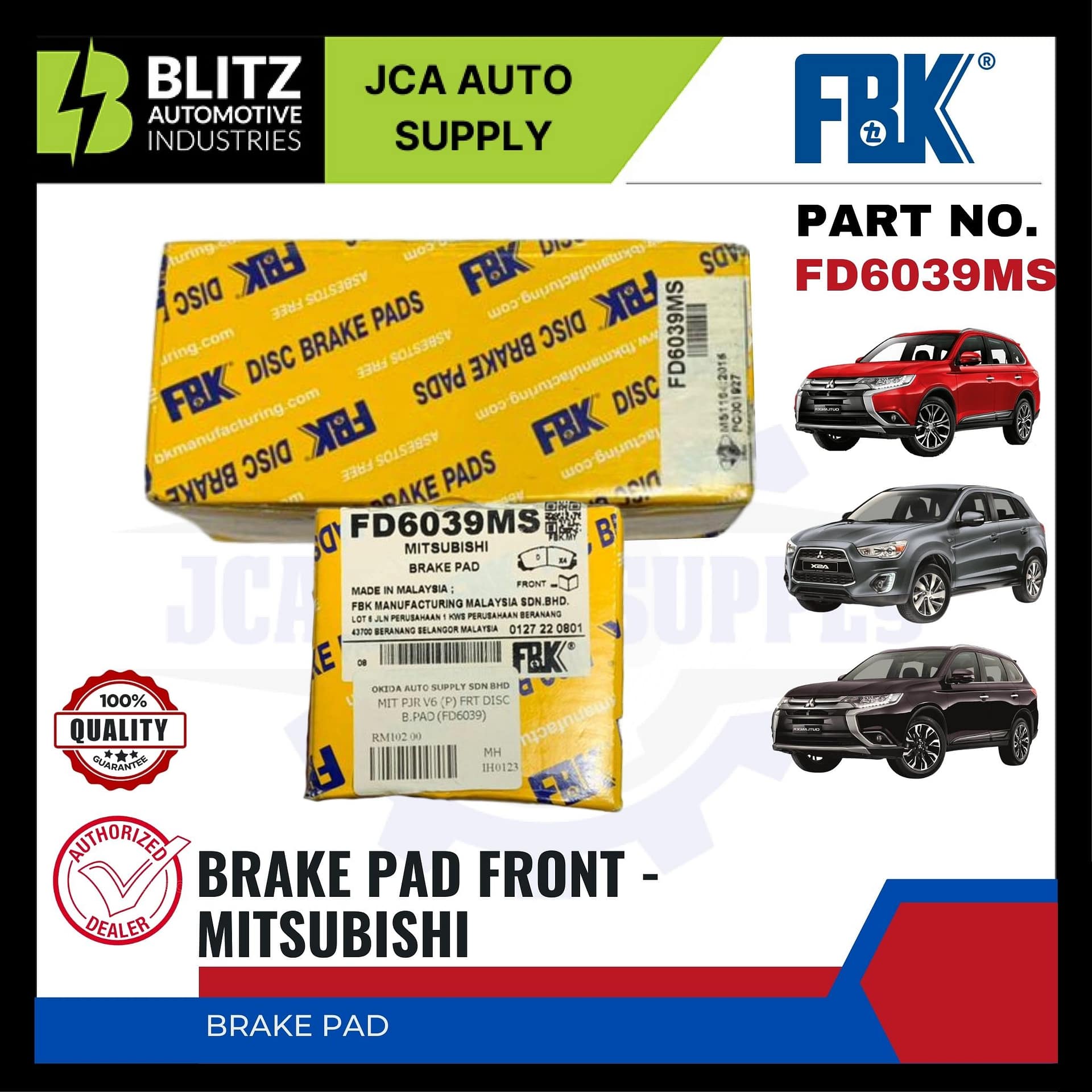 Mitsubishi Rear Disc Brake Pad – FBK – FD6039