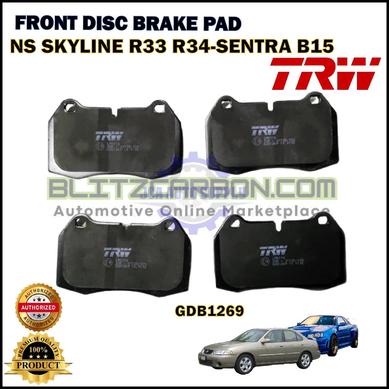 Name Nissan Skyline R33-R34-Sentra B15-Fairlady-Front Disc Brake Pad-TRW-GDB1269