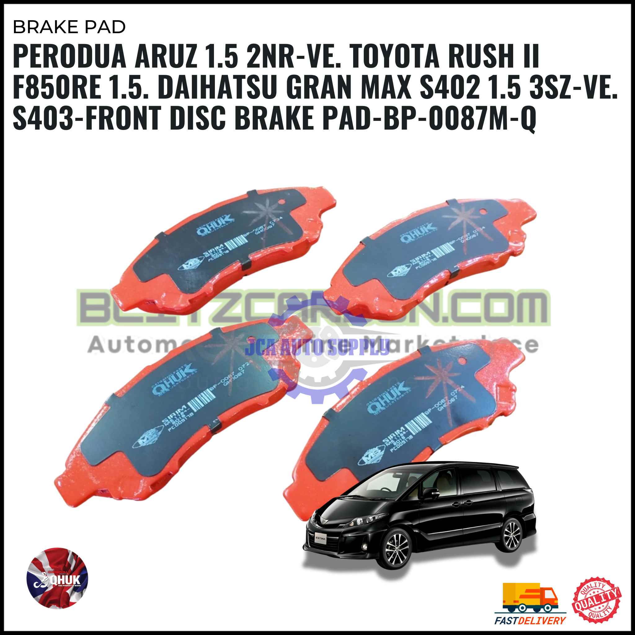 Perodua Aruz 1.5 2NR-VE. Toyota Rush II F850RE 1.5. Daihatsu Gran Max S402 1.5 3SZ-VE. S403-Front Disc Brake Pad-BP-0087M-Q