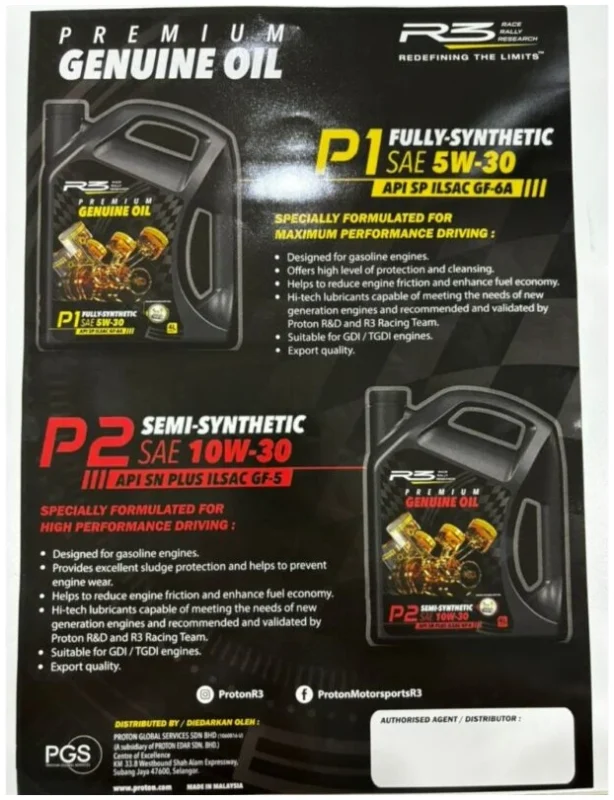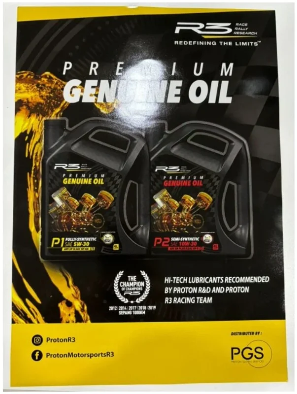 PROTON Racing Perfomance R3 Engine Oil P1 Fully-Synthetic Sae 5W-30 4 Liter + Proton R3 Oil Filter