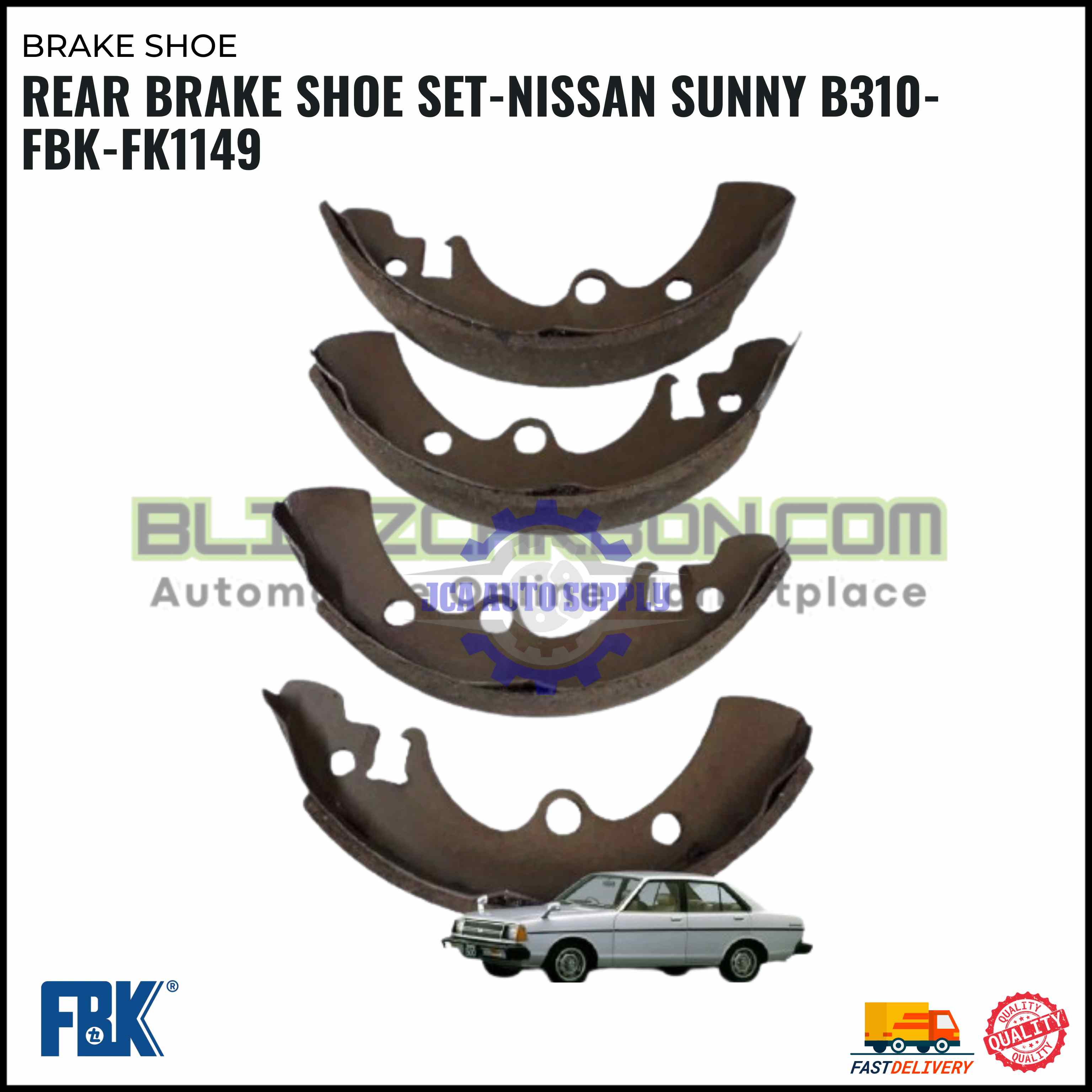 Rear Brake Shoe Set-Nissan Sunny B310-FBK-FK1149