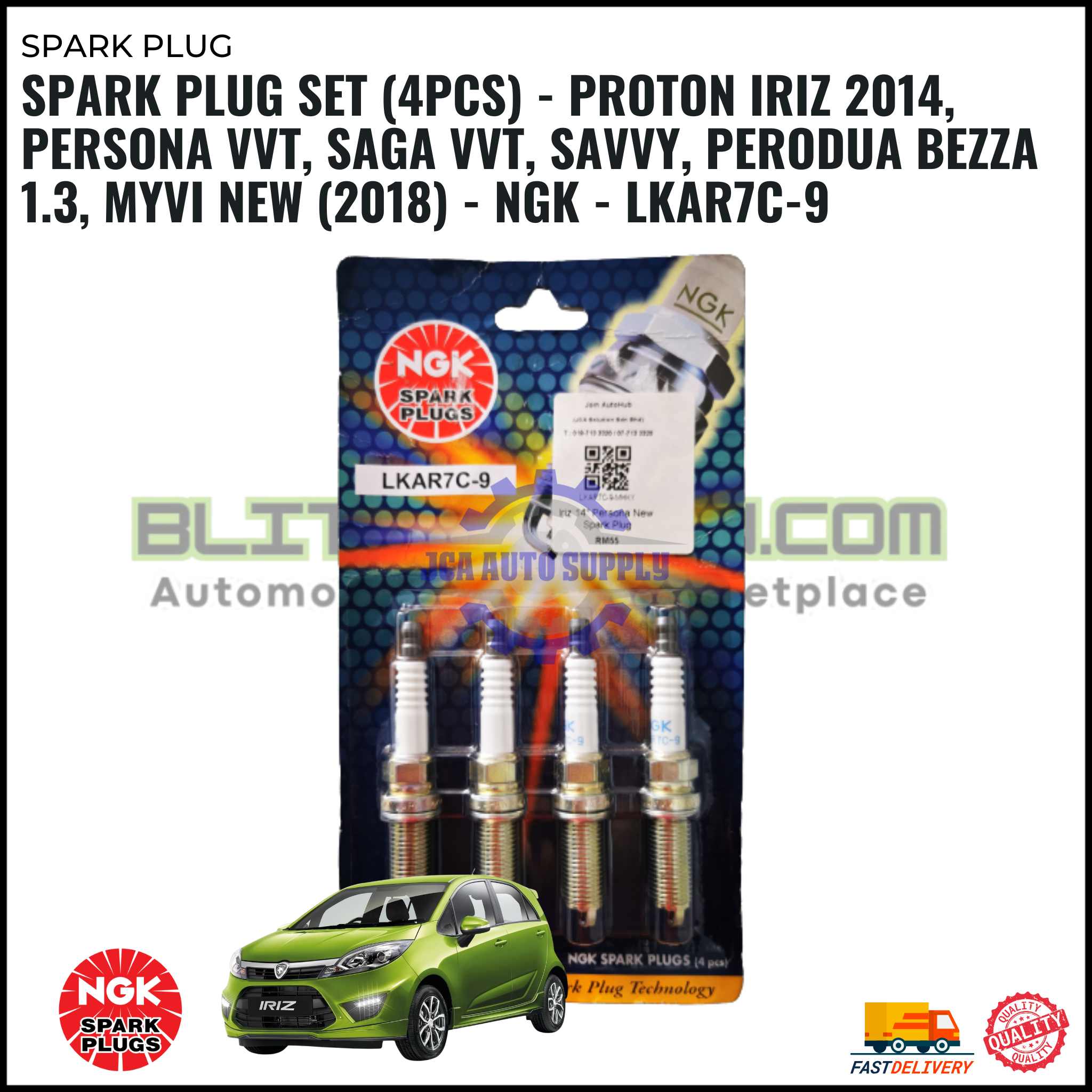 SPARK PLUG SET (4PCS) – PROTON IRIZ 2014, PERSONA VVT, SAGA VVT, SAVVY, PERODUA BEZZA 1.3, MYVI NEW (2018) – NGK – LKAR7C-9