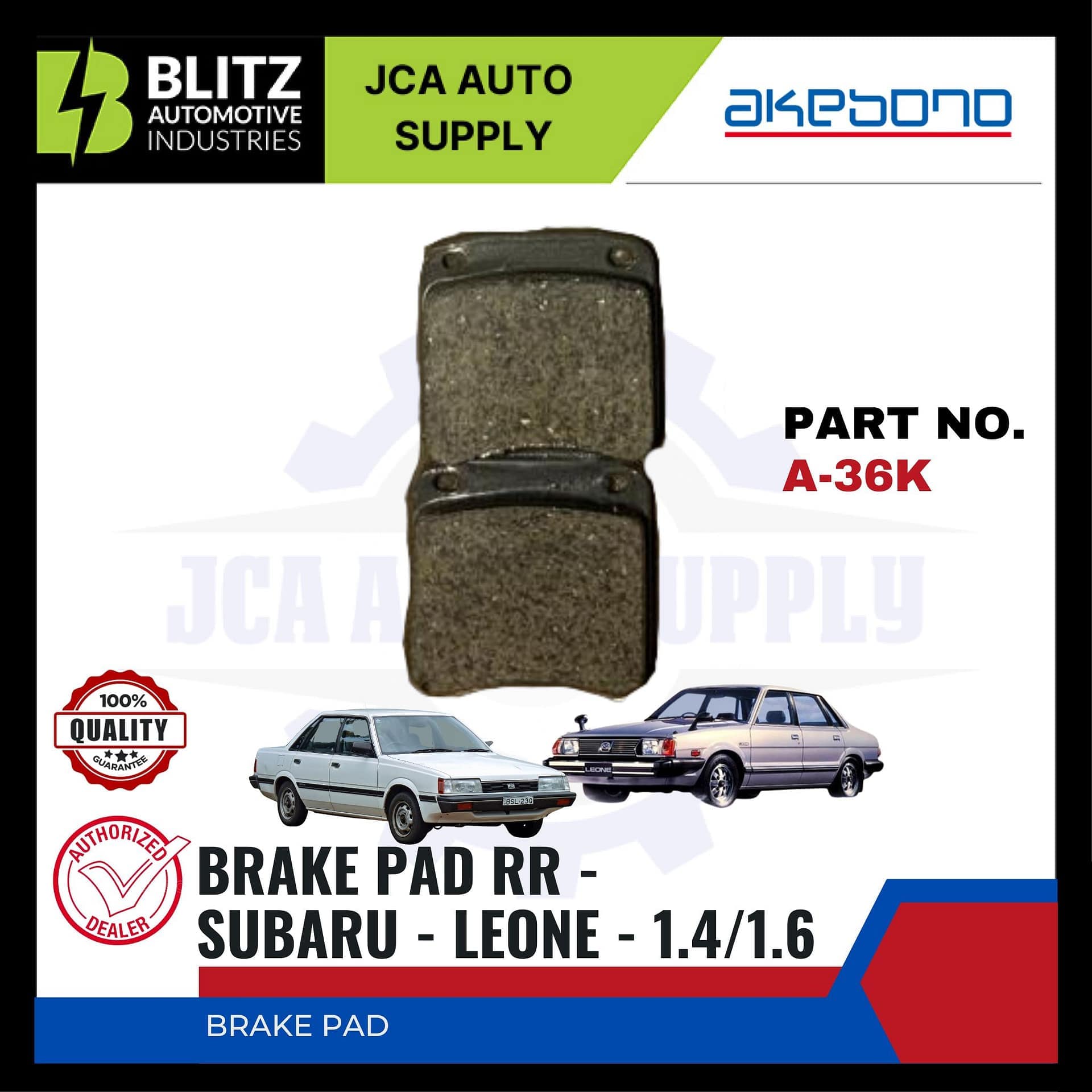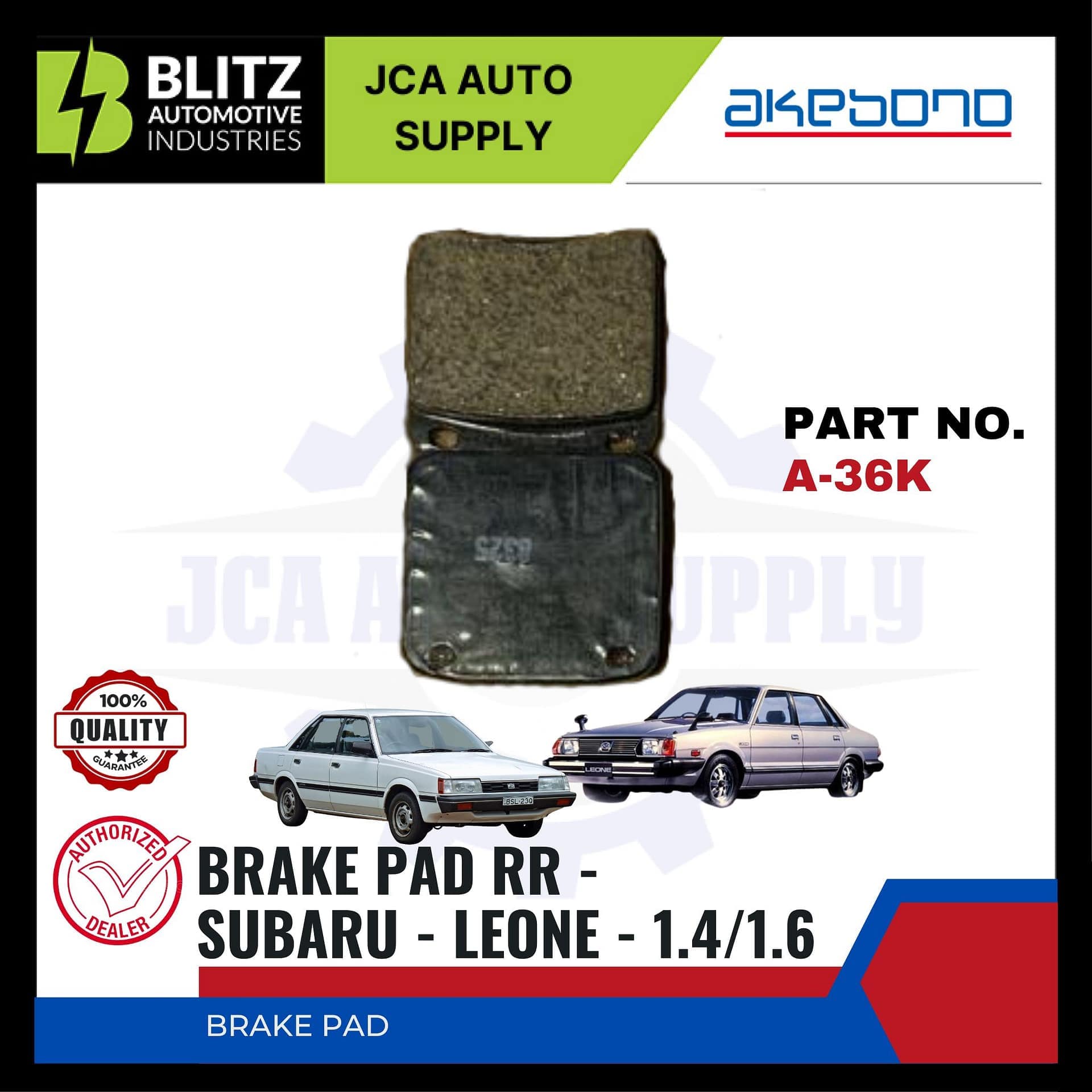 SUBARU- LEONE 1.4 – 1.6 – FRONT BRAKE PADS – AKEBONO – A-36K