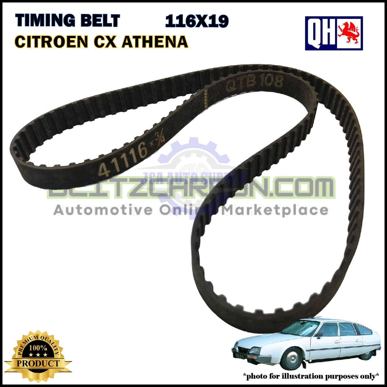 Tali Timing-Citroen CX Anthena 2.0cc-Fiat 128 1.1cc 1.3cc-Timing Belt-QHUK-QTB108 (116X19)