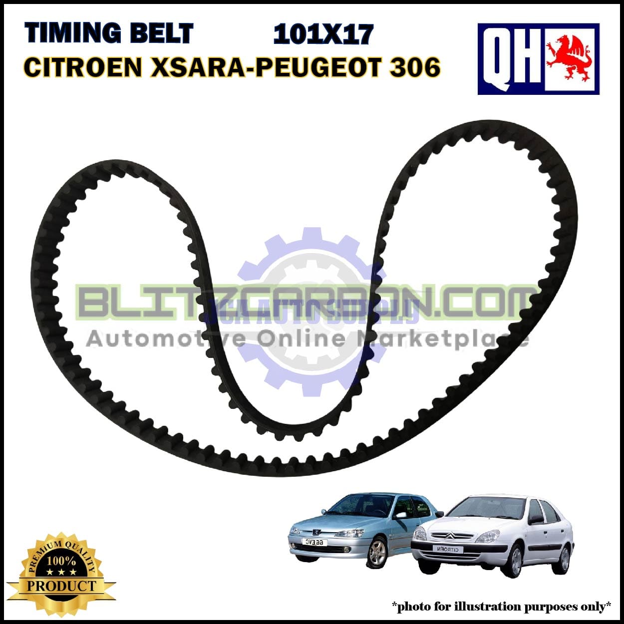 Tali Timing-Citroen Xsara 1.6cc-Peugeot 306 1.6cc-Timing Belt-QHUK-QTB348 (101X17)