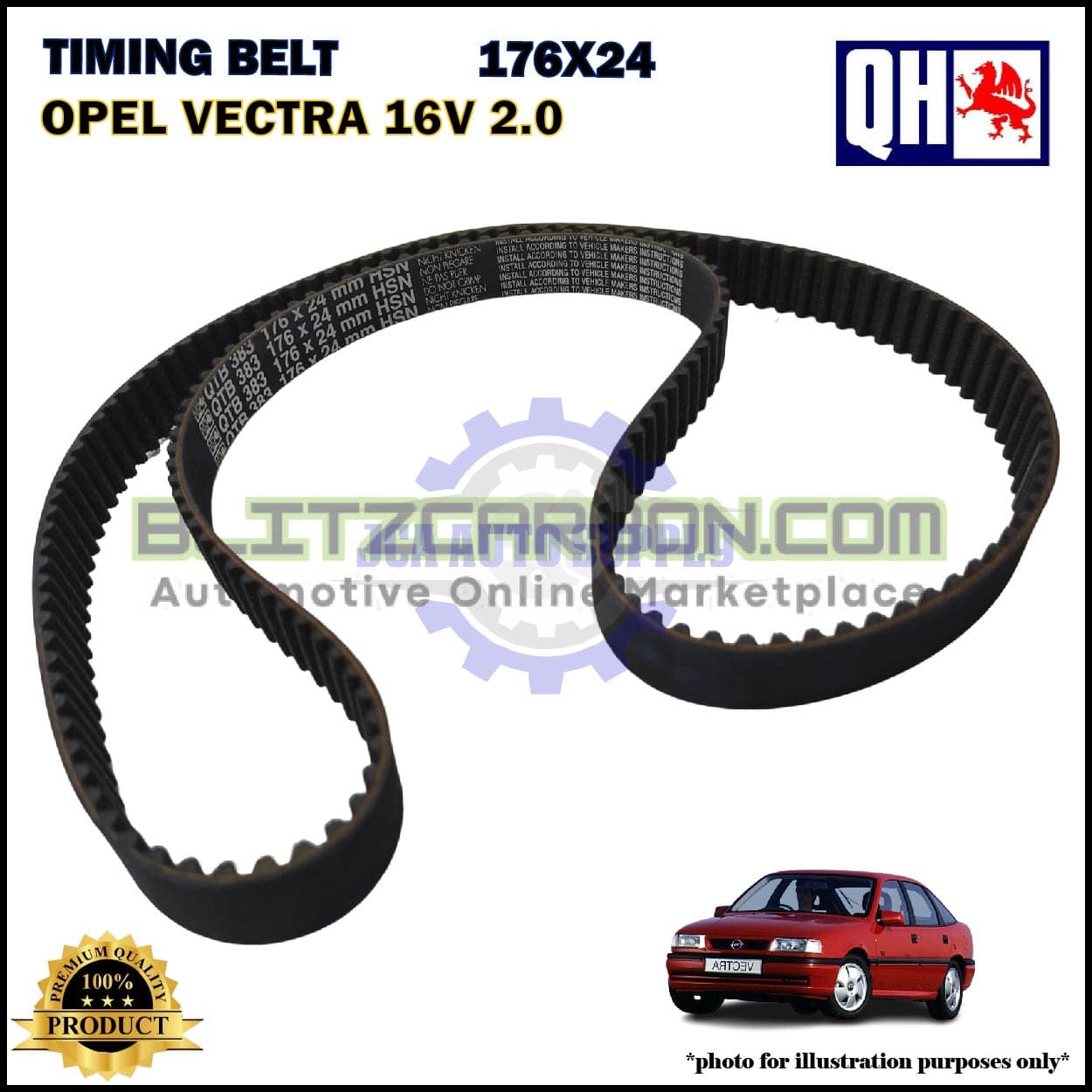 Tali Timing-Opel Vectra 2.0cc 16V-Timing Belt-QHUK-QTB383 (176X24)
