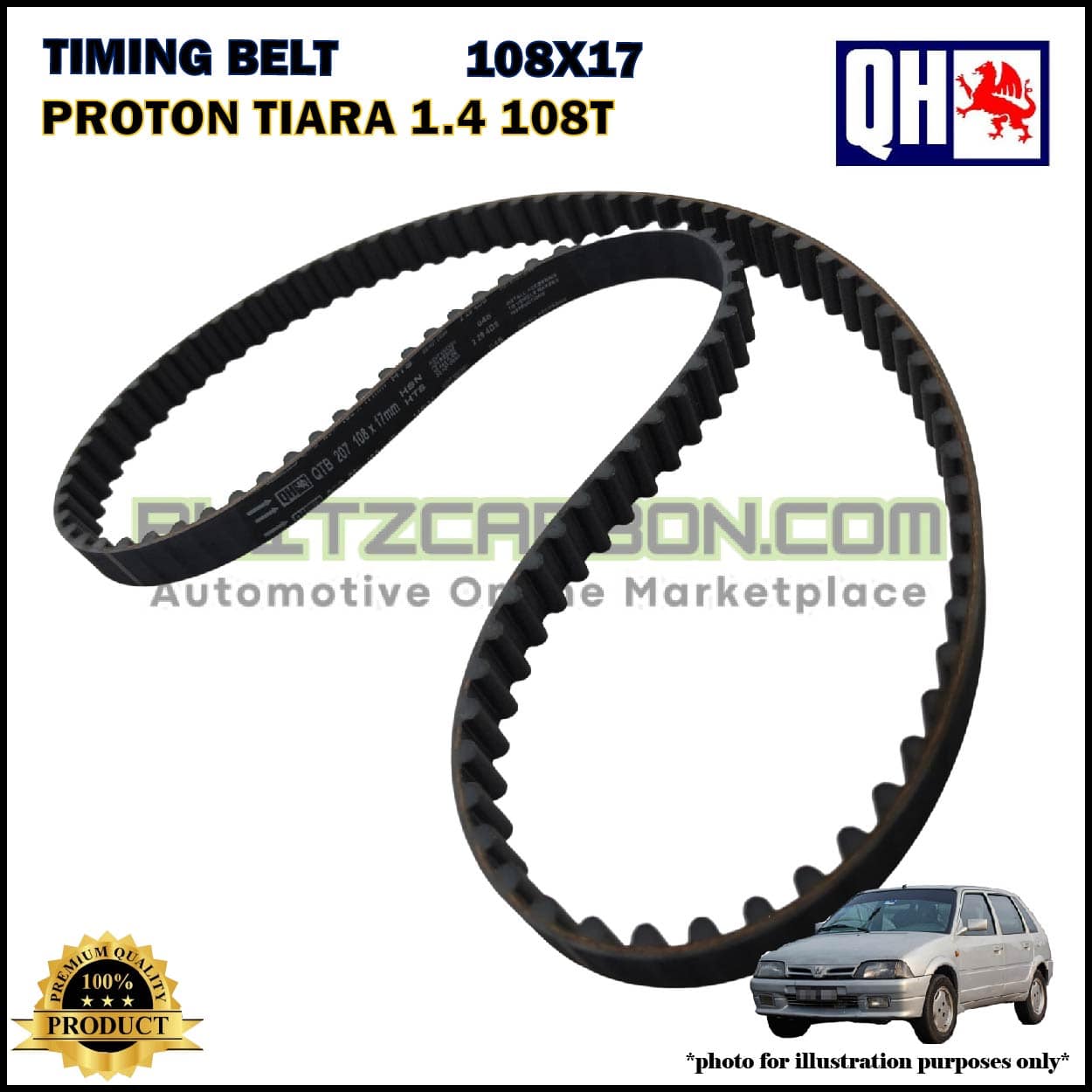 Tali Timing-Proton Tiara 1.4cc 108T-Citroen AX 1.4cc-Timing Belt-QHUK-QTB207 (108X17)