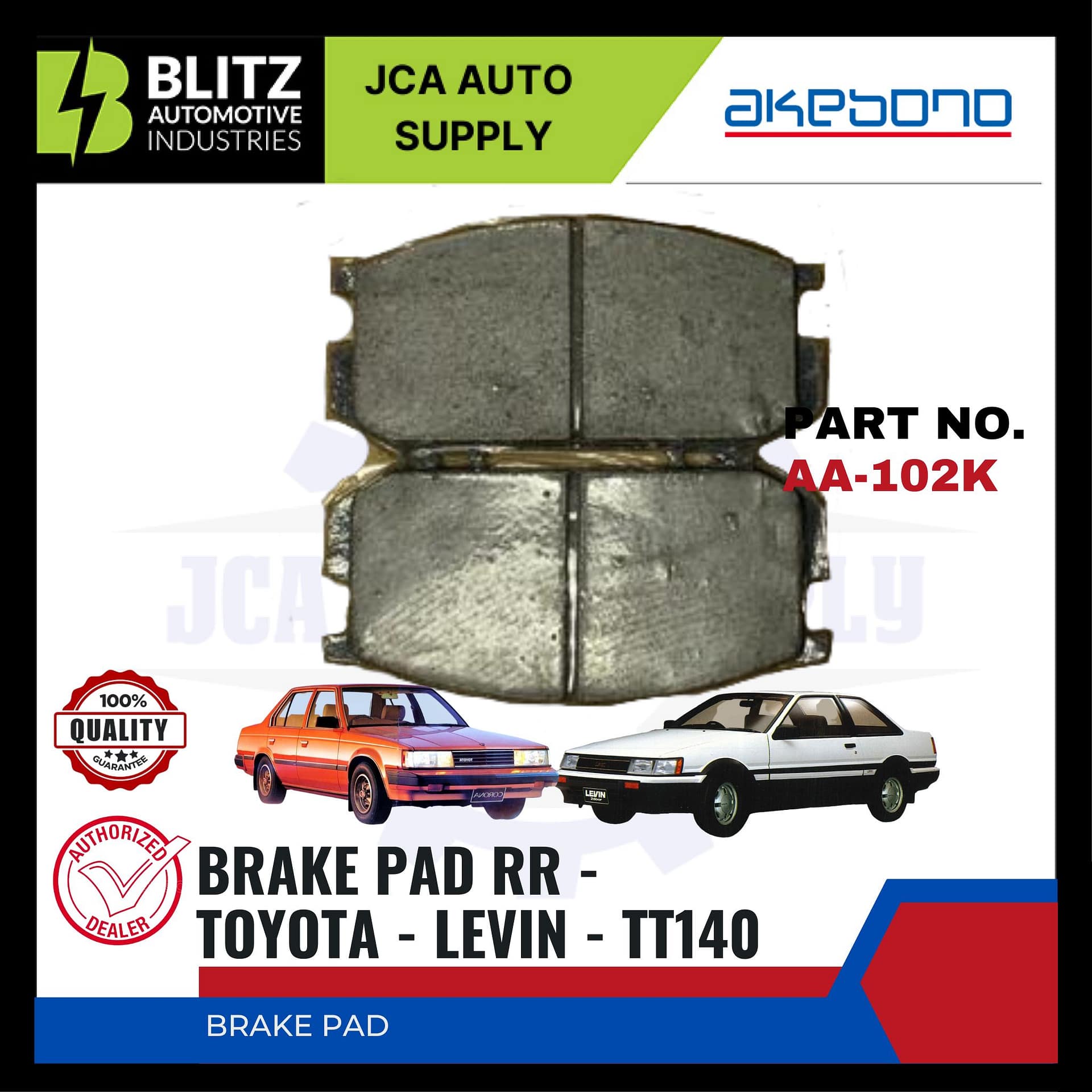 TOYOTA – LEVIN- TT140 – Front Brake Pads – AKEBONO – AA-102K