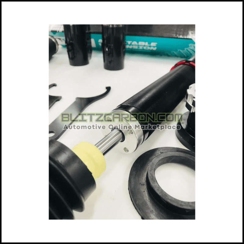 EXPERIENCE THE ULTIMATE IN HIGH-PERFORMANCE SUSPENSION WITH OUR TOP-OF-THE-LINE ADJUSTABLE SYSTEM, METICULOUSLY CRAFTED FOR BOTH DURABILITY AND PRECISION. FEATURING A TWIN-TUBE SHAFT, REINFORCED TUBING, DESIGNATED BODY SHIFT, AND DUST-SEAL TOP CAP, THIS SYSTEM IS ENGINEERED TO WITHSTAND EVEN THE TOUGHEST ROAD CONDITIONS. WITH A FULLY CUSTOMIZABLE DESIGN, YOU CAN TAILOR YOUR RIDE TO YOUR PREFERENCES AND THE DEMANDS OF THE ROAD, ENSURING SUPERIOR HANDLING AND A SMOOTH, RESPONSIVE DRIVING EXPERIENCE. OUR SYSTEM IS FILLED WITH HIGH-QUALITY DAMPER OIL AND NITROGEN GAS, PROVIDING OPTIMAL SHOCK ABSORPTION AND UNPARALLELED PERFORMANCE. GET READY TO ELEVATE YOUR DRIVING EXPERIENCE WITH THIS STATE-OF-THE-ART SUSPENSION SYSTEM