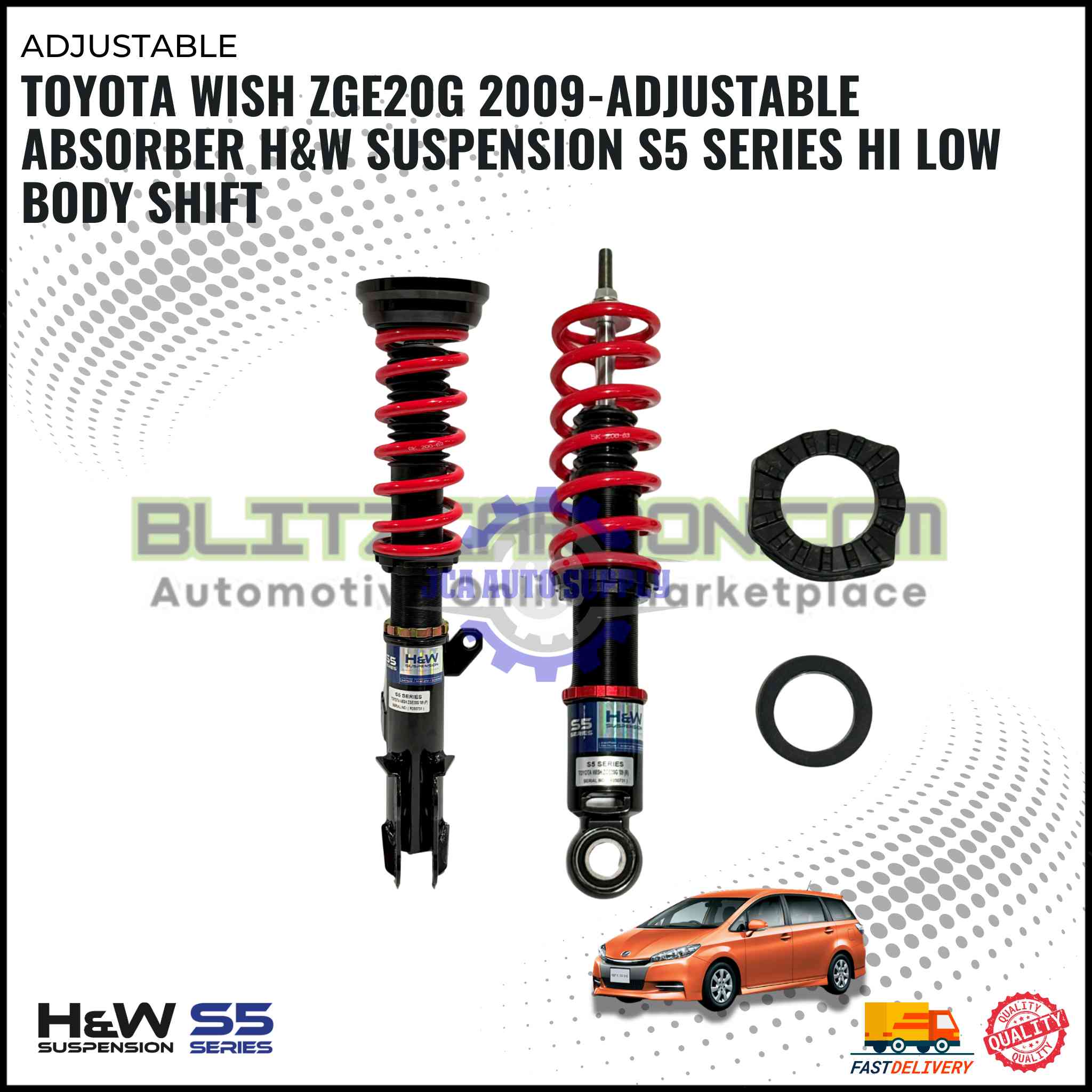 Toyota Wish ZGE20G 2009-Adjustable Absorber H&W Suspension S5 Series Hi Low Body Shift