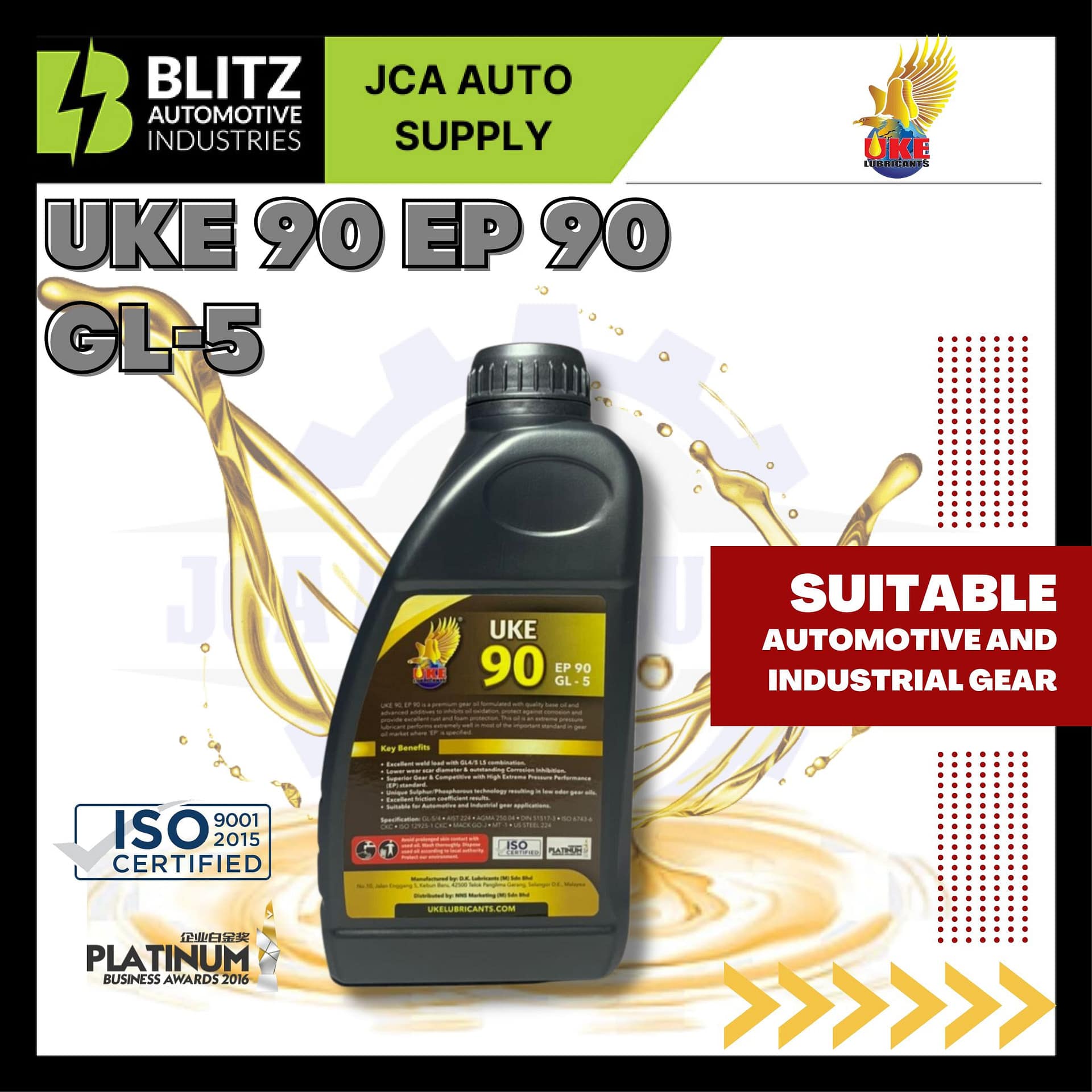100% ORIGINAL UKE 90 EP 90 GL-5 1 LITER
